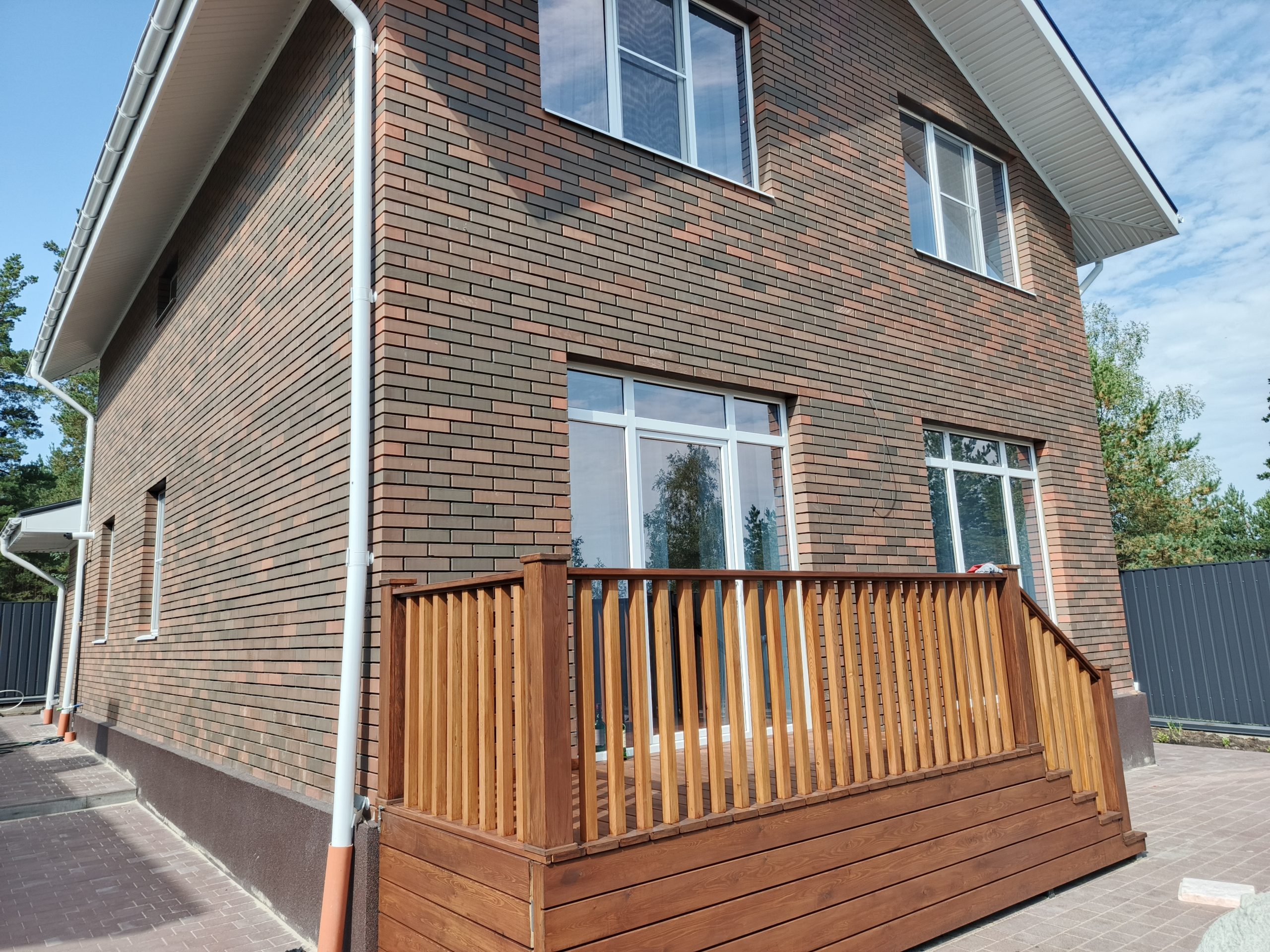 Отдельная опция для проектов, в которых терраса не предусмотрена. Может быть выполнена различными конструктивными решениями, в том числе, с возможностью остекления в дальнейшем и подводки отопления террасы, в том числе теплыми полами. Может быть укомплектована ограждениями из дерева или ДПК.